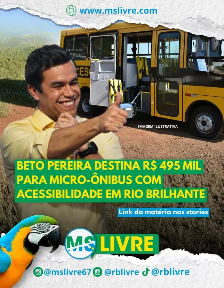 O município de Rio Brilhante acaba de receber uma excelente notícia: o deputado federal Beto Pereira (PSDB) destinou uma emenda parlamentar no valor de R$ 495 mil para a aquisição de um micro-ônibus com acessibilidade, ampliando as ações voltadas à inclusão e à mobilidade urbana.